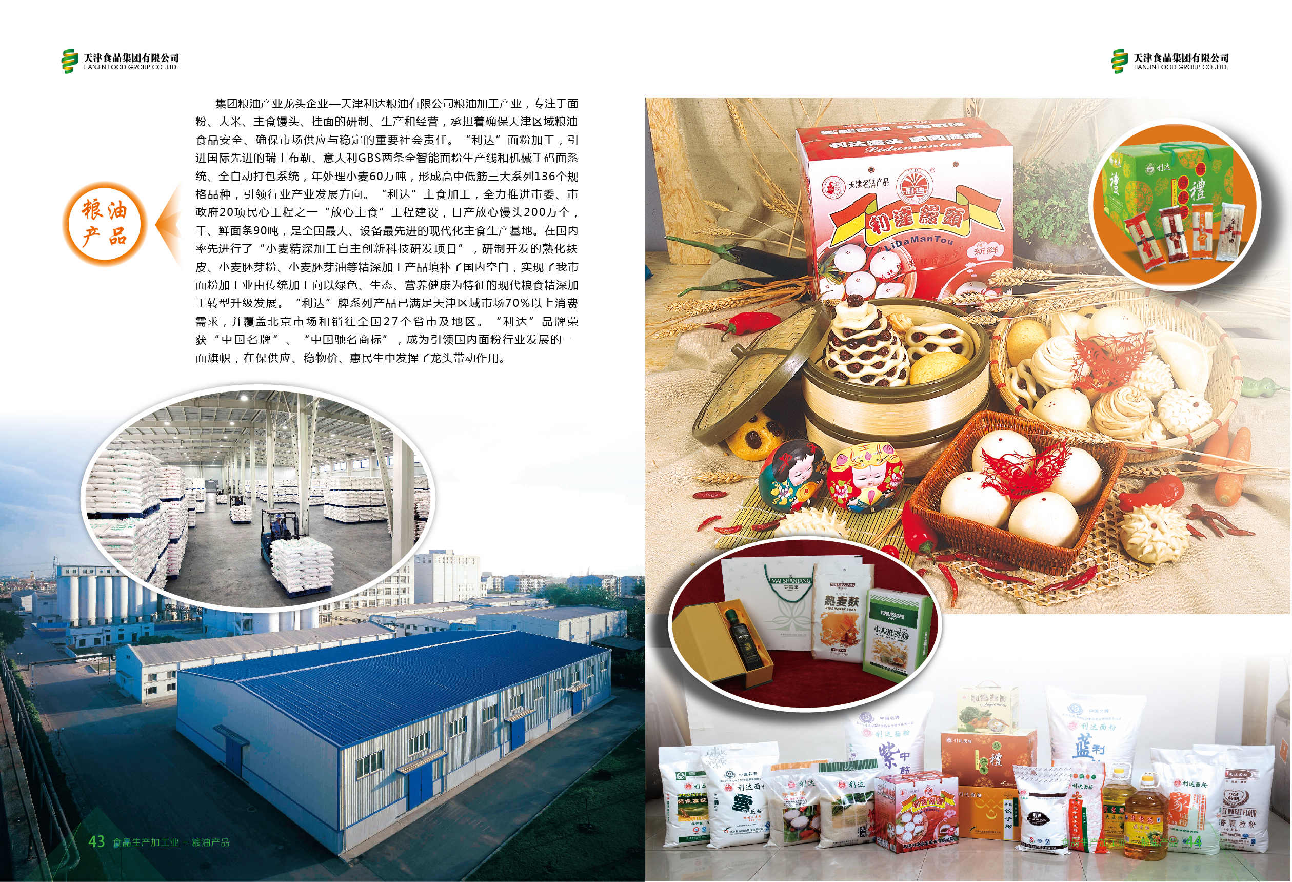集团粮油产业龙头企业——天津市利达粮油有限公司专注于面粉、大米、主食馒头和挂面的研制、生产和经营,“利达”品牌在全国享有盛誉,利达馒头和利达蒸食花样系列,品种多样、麦香浓郁,年产量达4700万个。在国内率先进行“小麦精深加工自主创新科技研发项目”,实现我市面粉加工业由传统加工,向绿色、生态、营养健康为特征的现代精深加工转型升级发展。