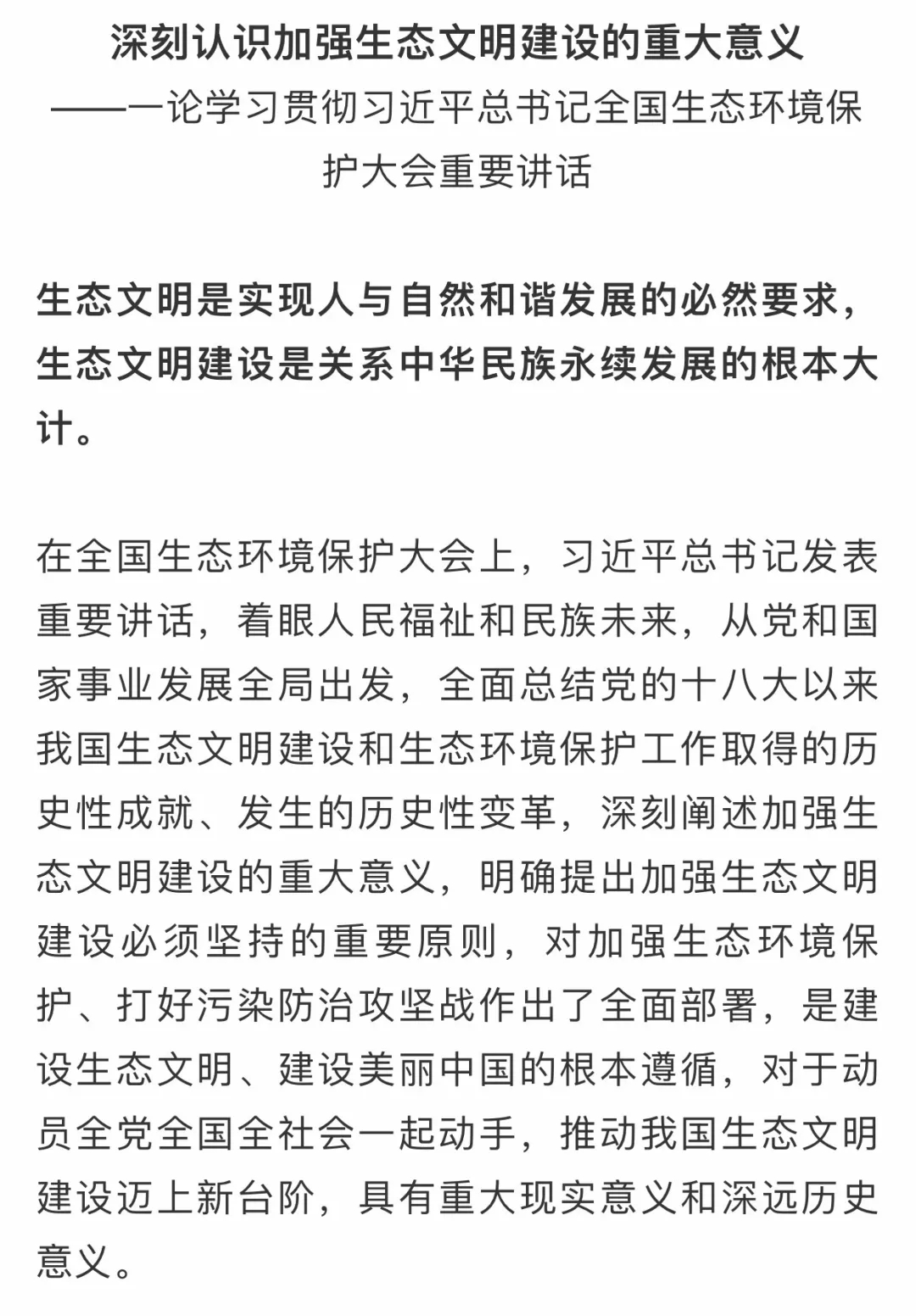 人民日报评论员:一、二论学习贯彻习近平总书记全国生态环境保护大会重要讲话