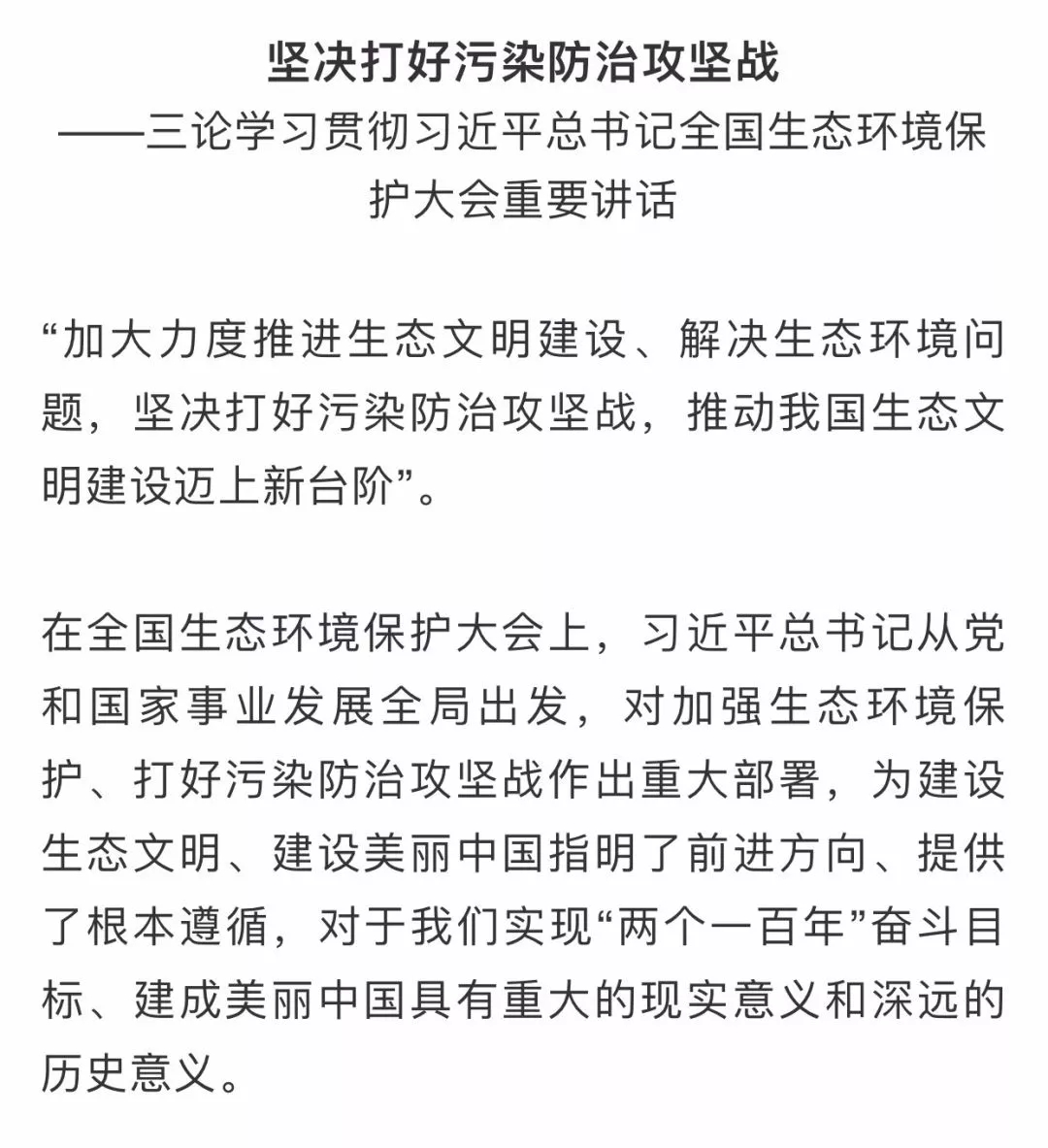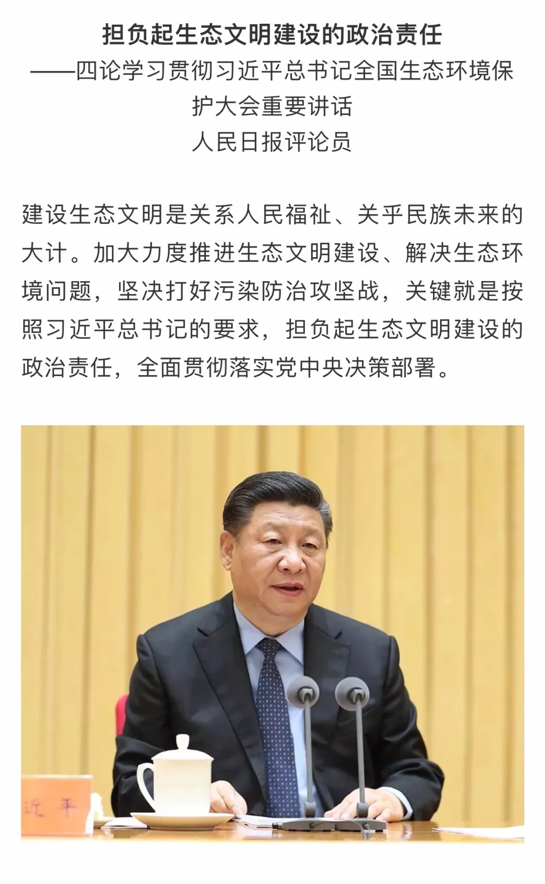 人民日报评论员:三、四论学习贯彻习近平总书记全国生态环境保护大会重要讲话