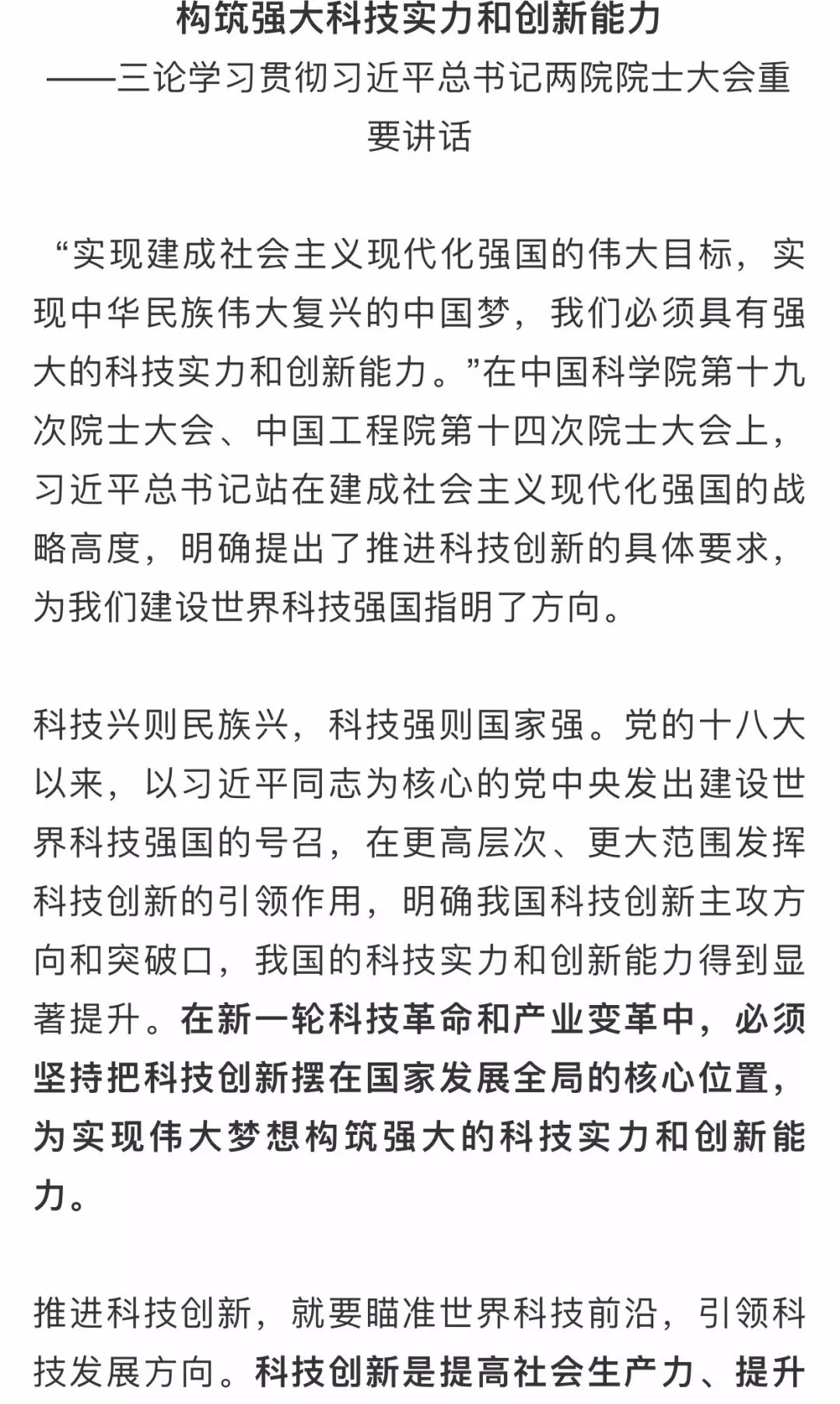 人民日报评论员:构筑强大科技实力和创新能力——三论学习贯彻习近平总书记两院院士大会重要讲话