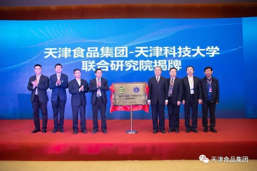 签约仪式结束后,张勇和韩金玉共同为“天津食品集团-天津科技大学联合研究院”揭牌,标志着双方联合建设以开放式研究院为代表的科技创新载体正式拉开序幕。