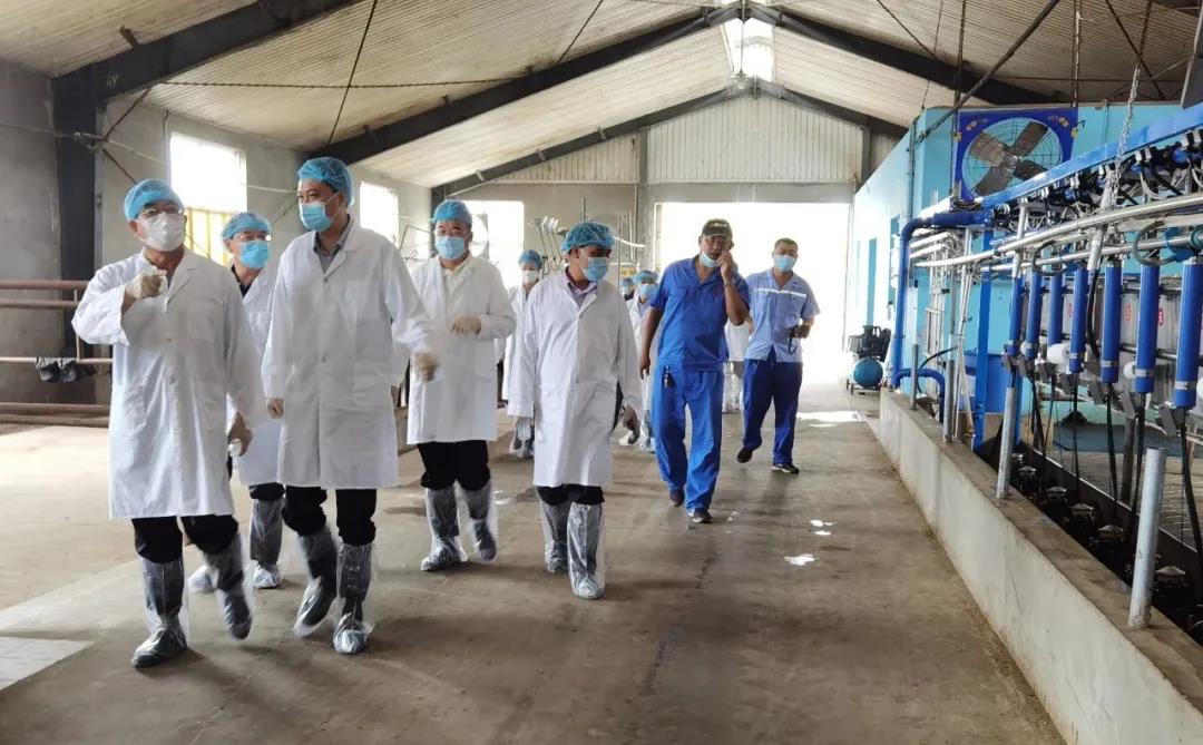 陈浙闽一行考察了第七奶牛场分公司的饲料制备区、牛舍饲喂区、挤奶车间、产房、沼气站等重点区域。期间,第七奶牛场分公司负责人从夯实生物安全基础、牢固防疫防线、提高预警、提升技能、增强防范意识、落实无害化处理监管六方面,详细汇报了嘉立荷牧业公司严格落实动物防疫要求,切实维护公共卫生和食品安全的情况。