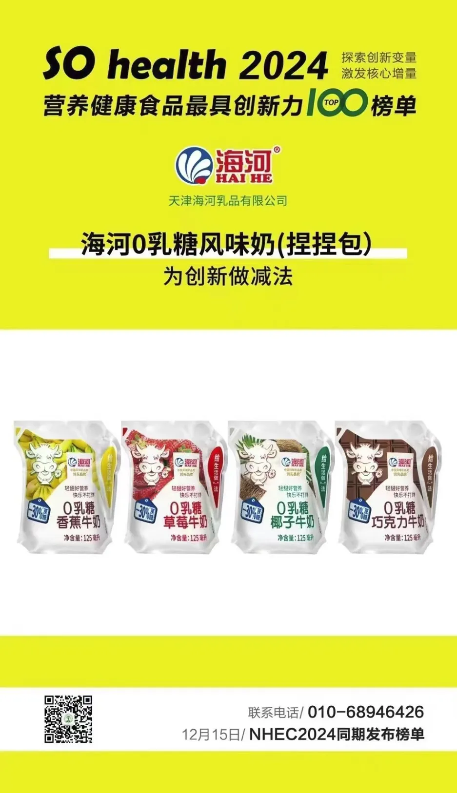 海河0乳糖风味奶成功入选“SO health营养健康食品最具创新力TOP100”榜单