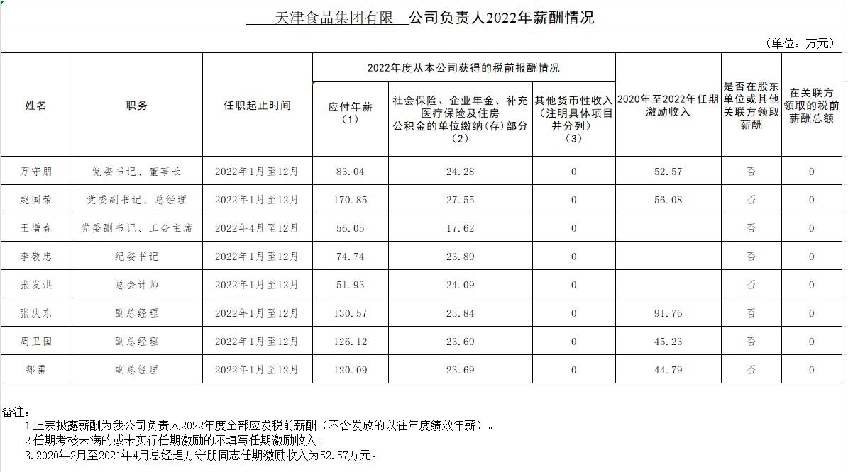 负责人薪酬