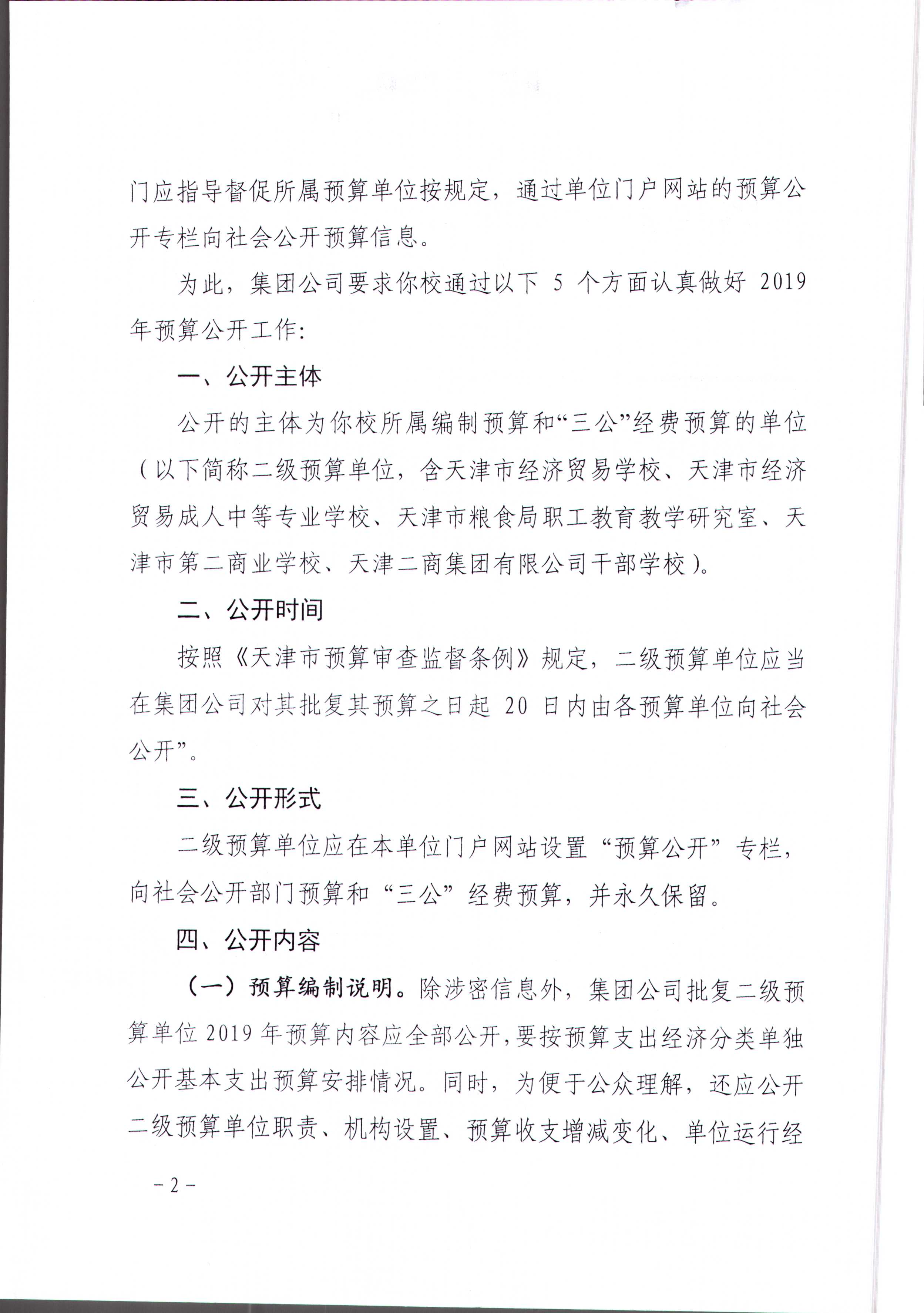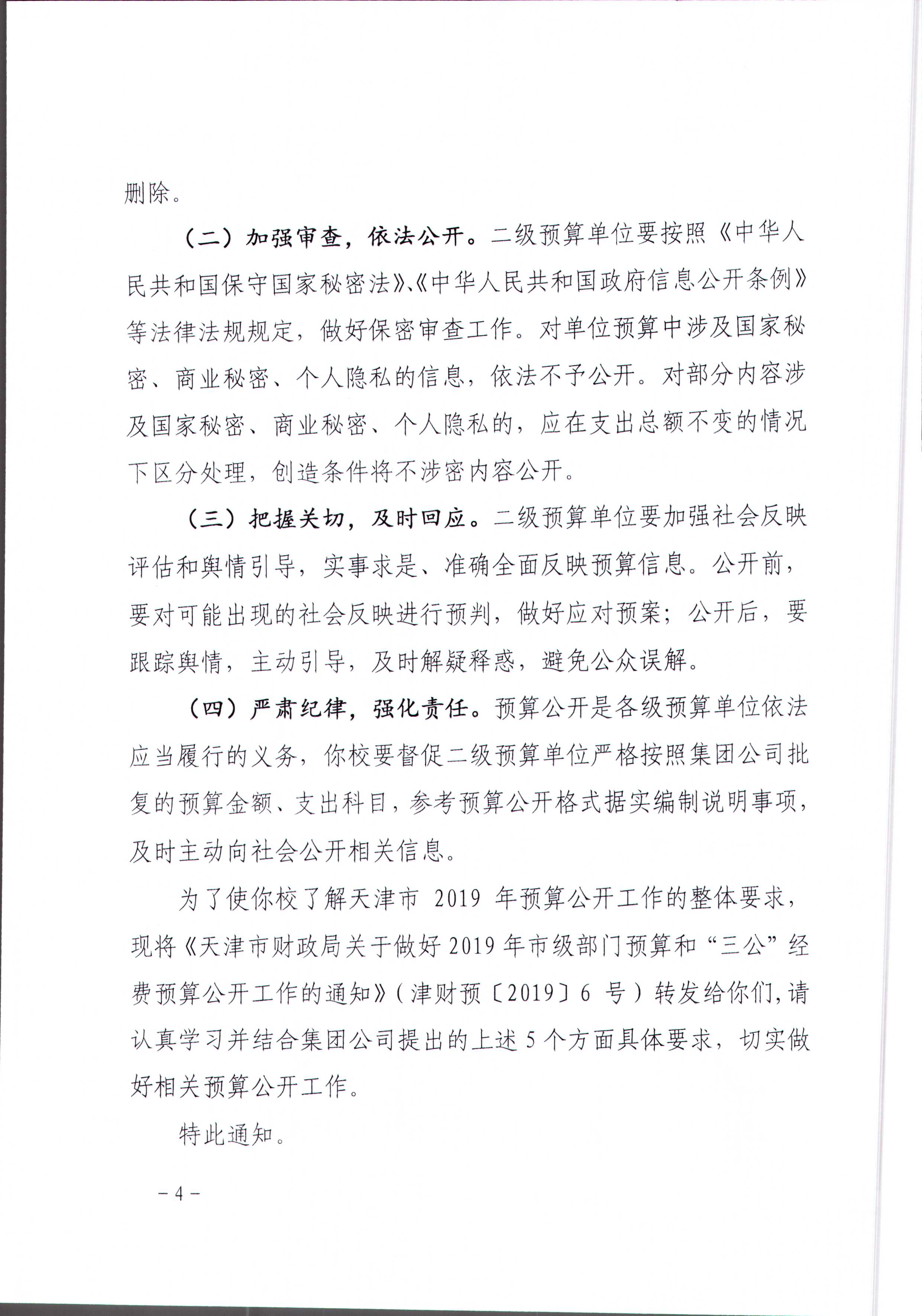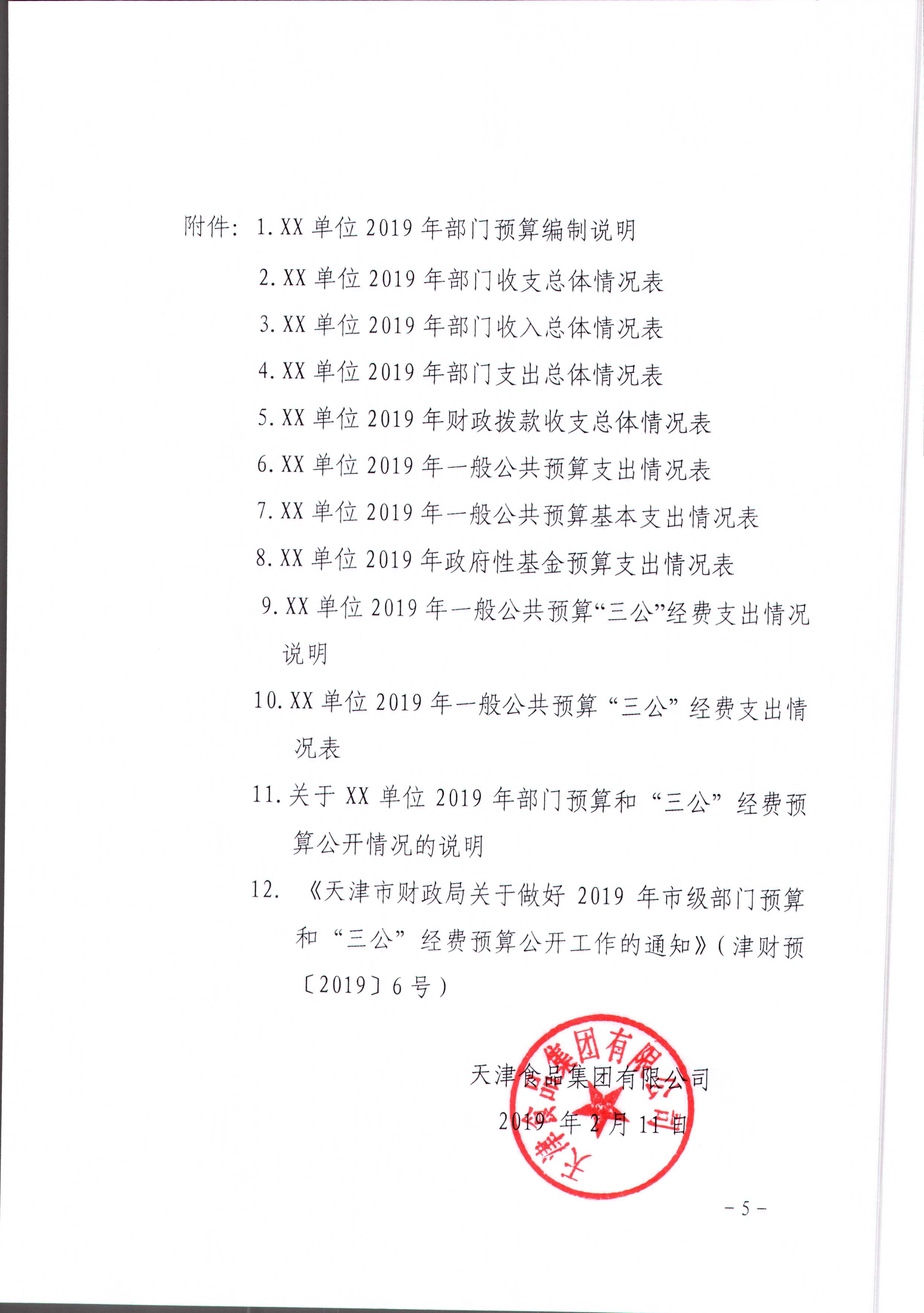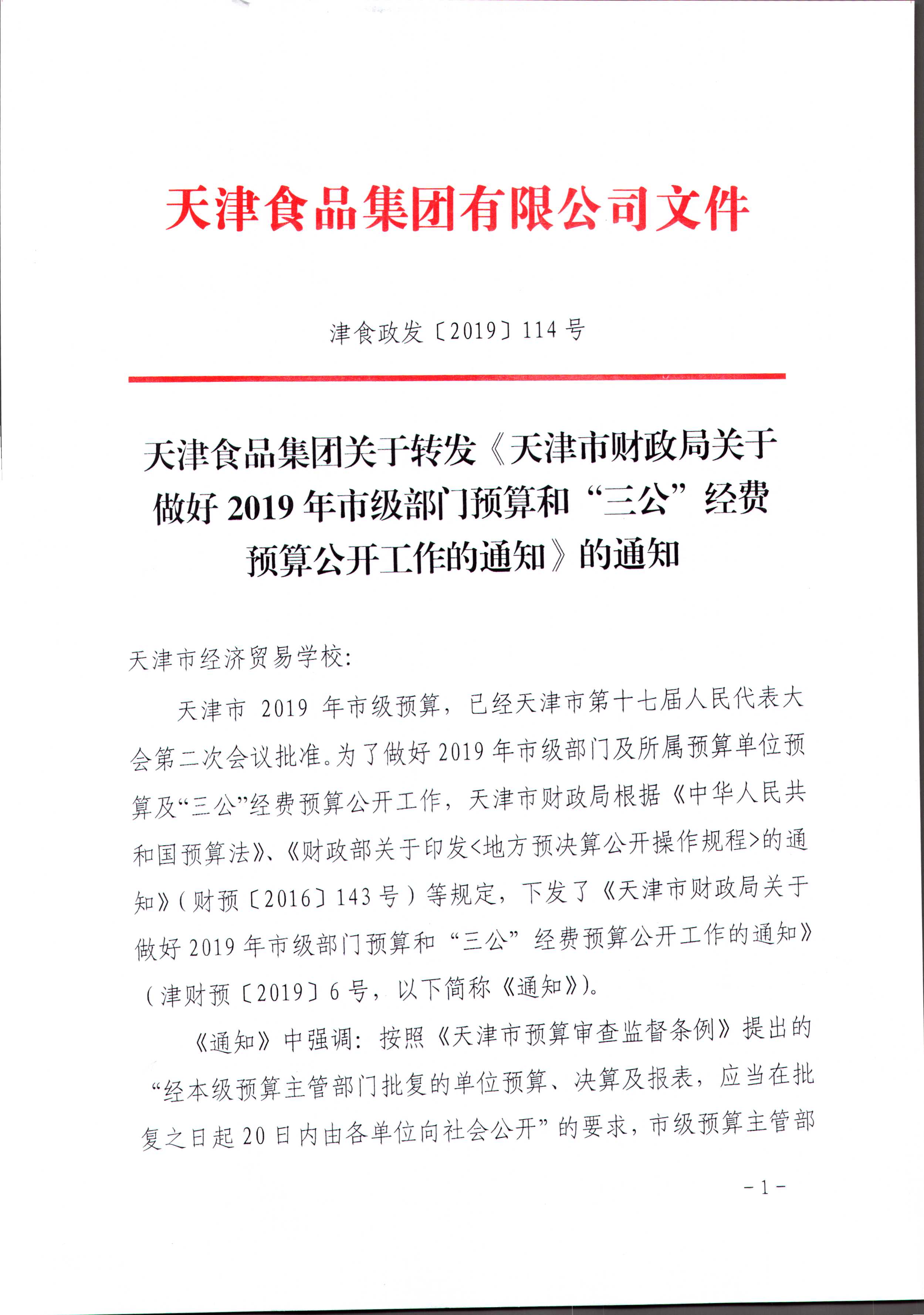 天津食品集团关于转发《天津市财政局关于做好2019年市级部门预算和“三公”经费预算公开工作的通